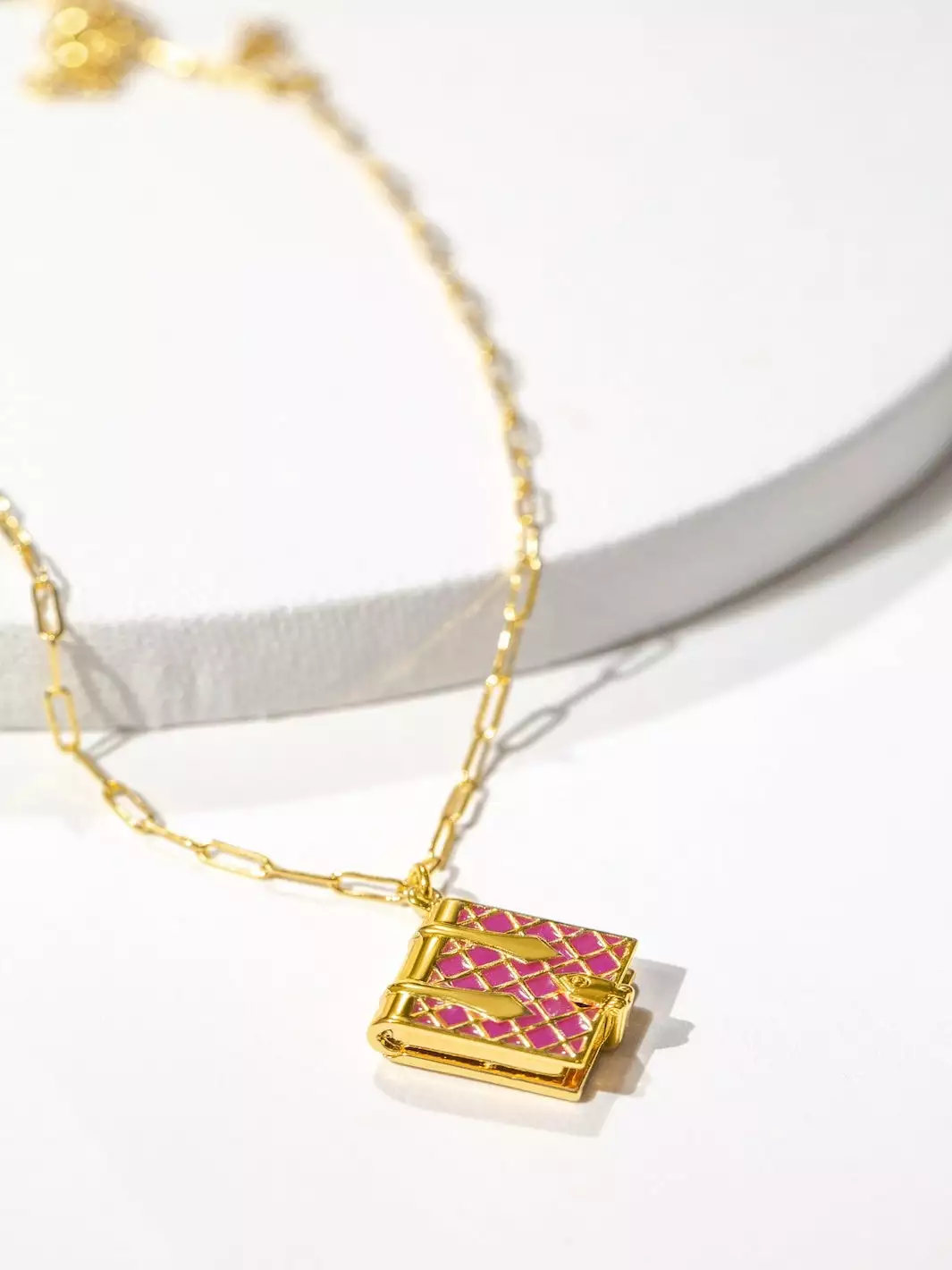 We designed these book necklaces to honor the moments and milestones along your personal narrative. The magenta enamel detailing is a nod to a next chapter full of compassion, emotional balance and harmony.