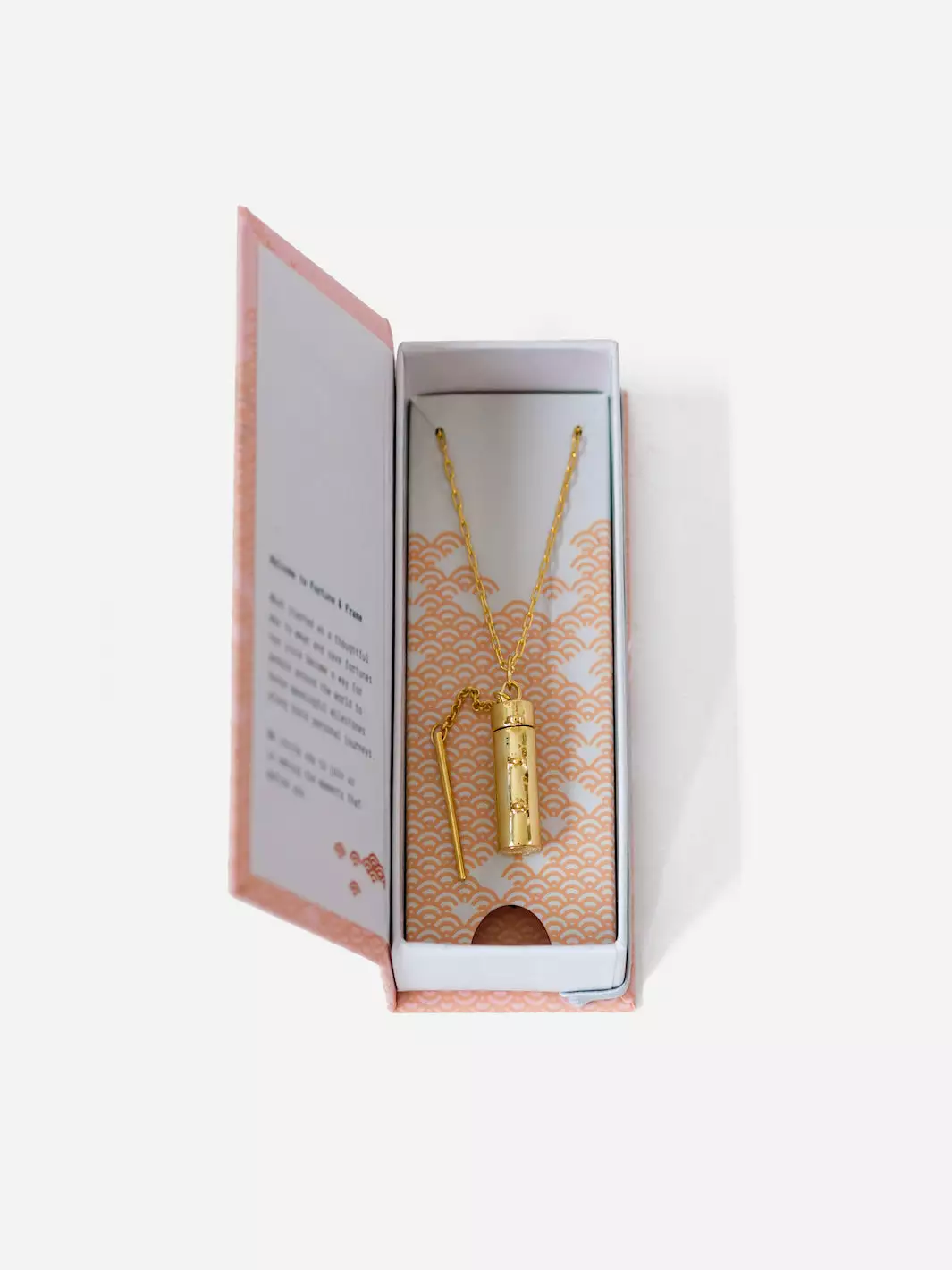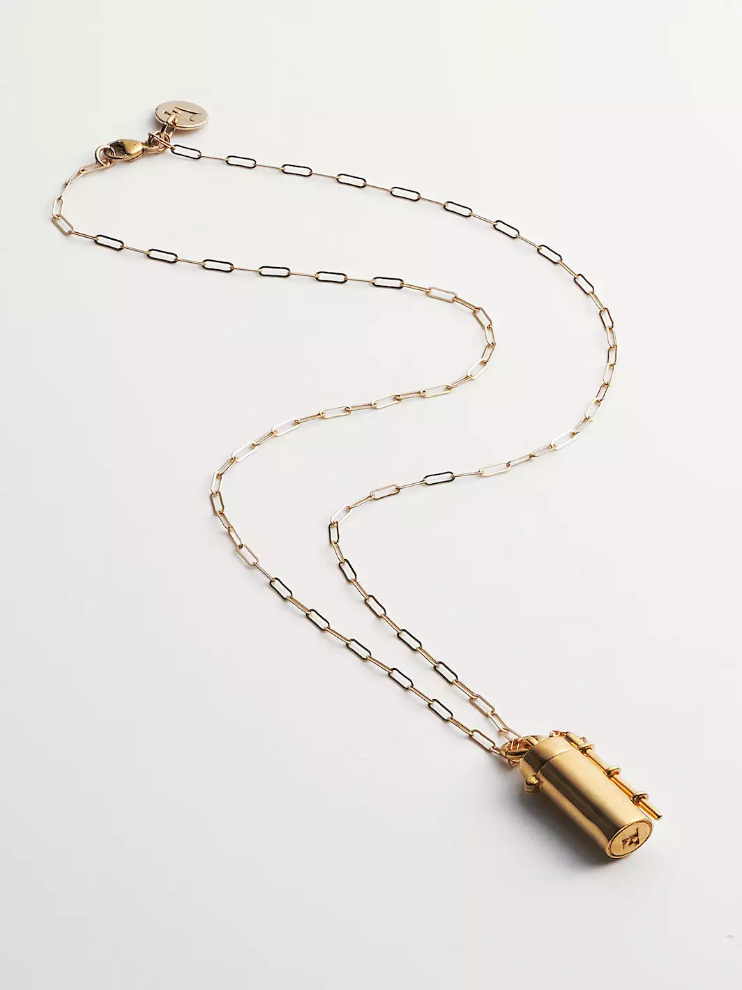 Inspired by vintage jewelry that once held perfume, messages and even ashes, the Capsule + Wand Locket opens and closes to reveal your most sacred thoughts and sentimental keepsakes.