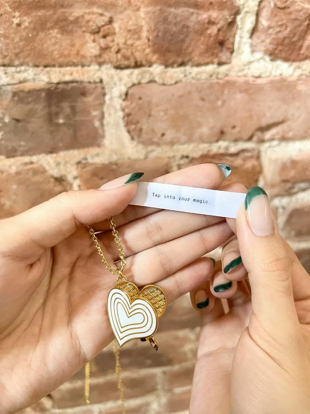 The perfect keepsake for those messages that should be kept close to the heart, this deco-inspired Heart Locket opens to reveal a meaningful mantra.