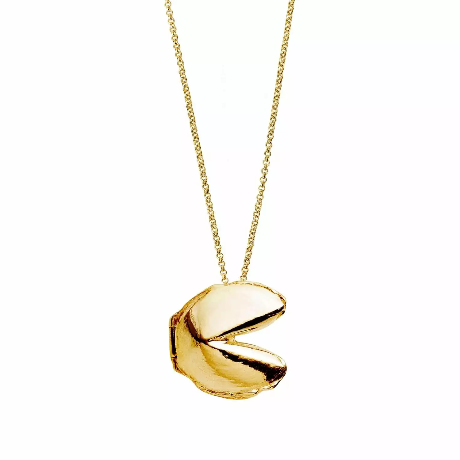 The Fortune Cookie Locket opens to reveal a rolled fortune scroll. Choose your message from our gallery or write your own personal mantra or quote below. Have a fortune you’ve been holding onto? Swap ours out with your own any time.