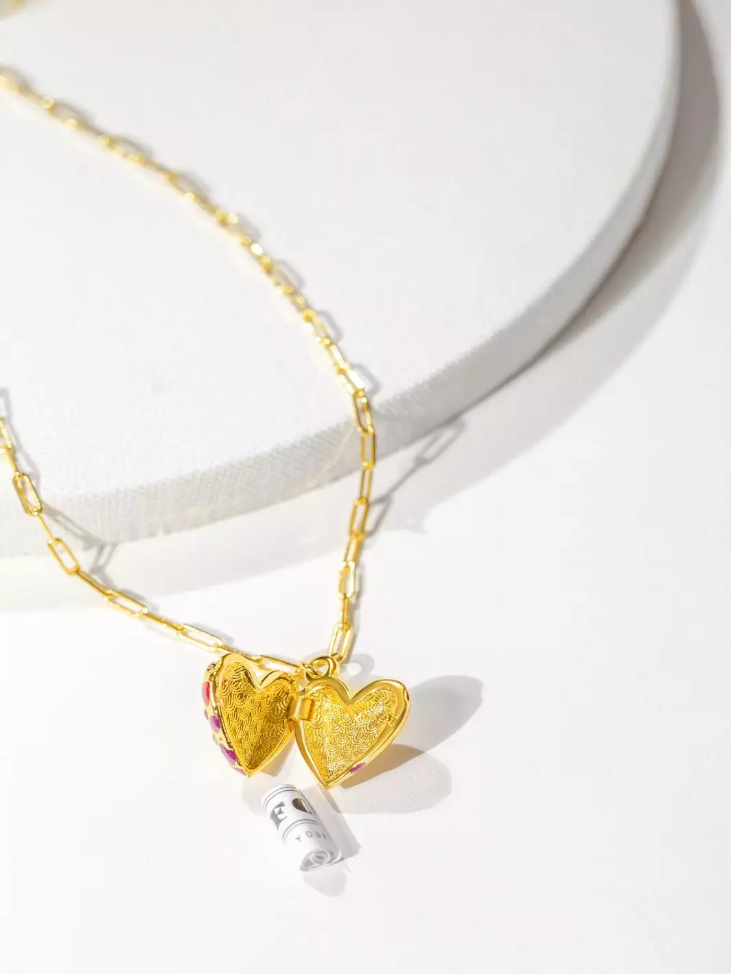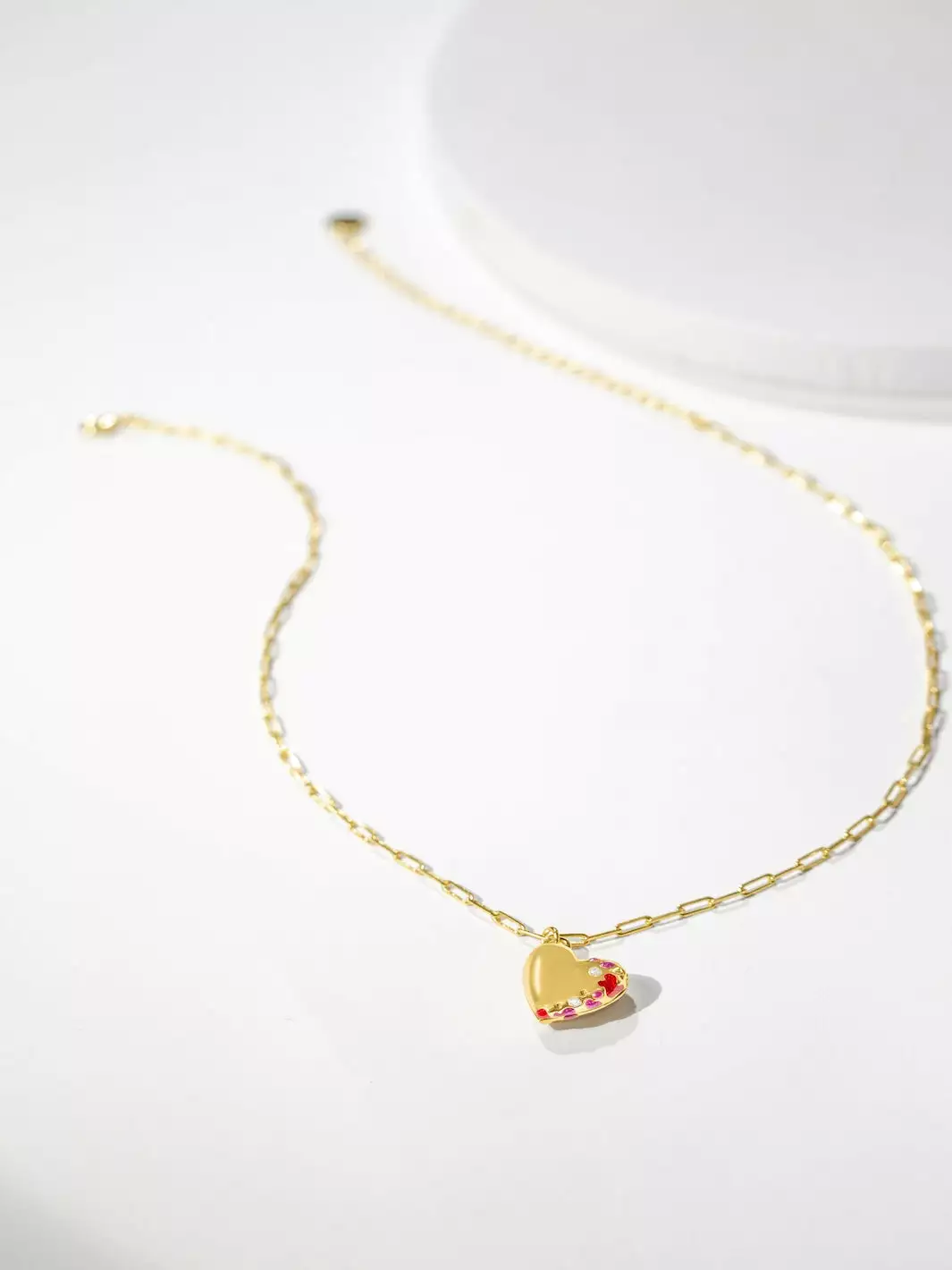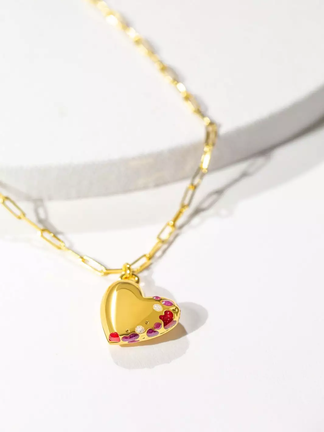 We’ve transformed enamel into Ruby, Amethyst & Crystal-style gems to create intriguing detailing on the outside. We then engraved our signature wave pattern on the inside for an added touch of thoughtfulness, and placed the locket on a dainty paperclip-style chain.
