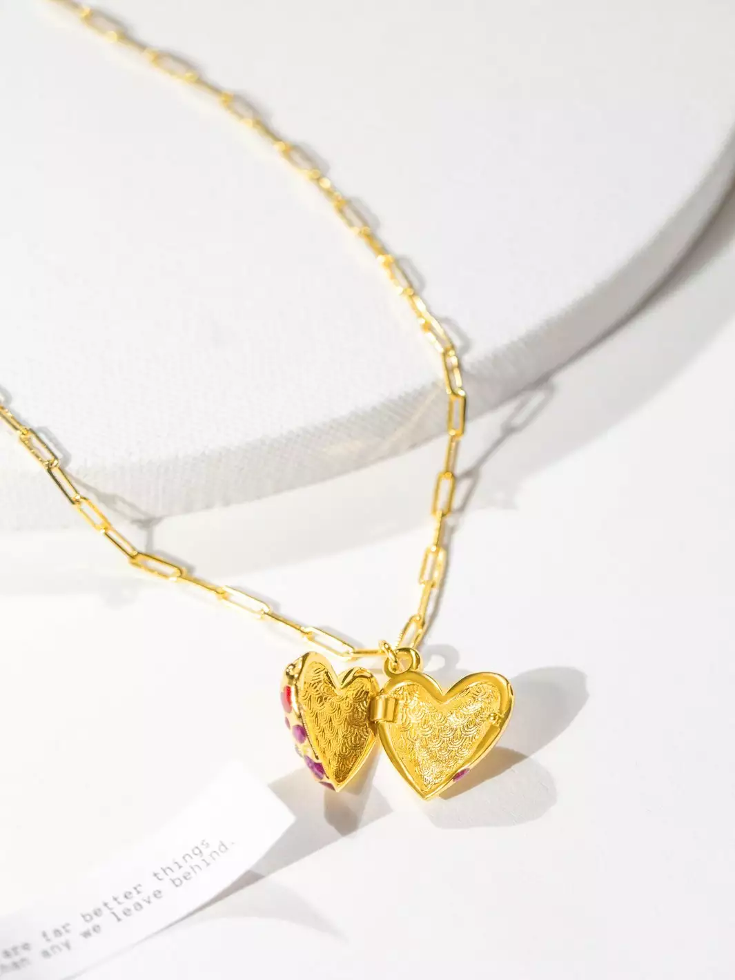 The centerpiece of our Heart Phases collection, this Jeweled Heart Locket necklace opens to reveal your personalized message, inspirational quote or the note to self you need to stay grounded.
